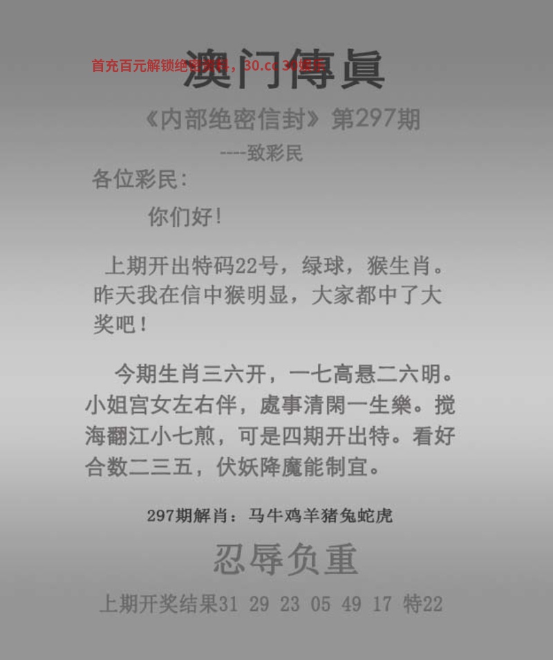 | 296期:六肖中特【羊猴蛇鸡兔龙】开:猴22中 |