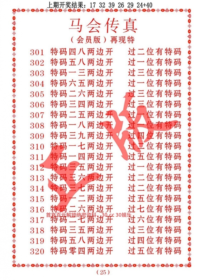 | 300期:♻⑤尾中特♻【0/3/4/6/7尾】开:虎40中 |